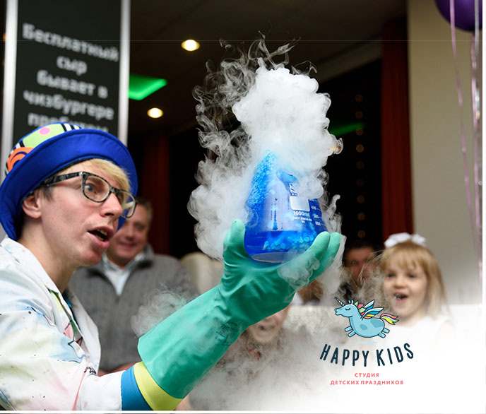 На наших представлениях нет зрителей: здесь каждый – непосредственный участник опытов, экспериментов и веселых затей, поэтому скучно не будет никому! Бесконечный интерактив, смелые импровизации и необъятный запас тем зрелищных и волнительных шоу на детском празднике оставляют неизгладимое впечатление и находят отклик в сердцах детей!